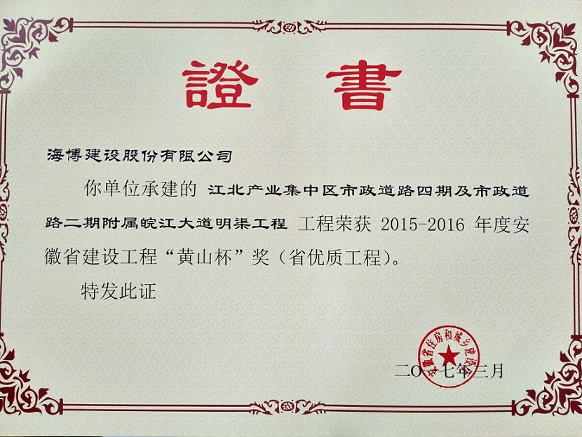 近期,我公司承建的江北產業(yè)集中區(qū)市政道路四期及市政道路二期附屬皖江大道明渠工程,喜獲2015-2016年度安徽省建設工程“黃山杯”榮譽。該工程位于蕪湖市鳩江區(qū)江北產業(yè)集中區(qū)起步區(qū)內,路線全長約9.4km,呈“井”字形布局,路....