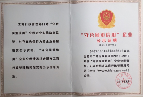 近日,合肥市工商行政管理局頒發(fā)了市級守合同重信用公示證書,合肥市天秤水利工程質量檢測有限公司首次申報并獲得此項殊榮。 天秤公司在發(fā)展過程中一直注重于提升企業(yè)的社會影響力,日益健全合同信用管理體系,完善并規(guī)范...