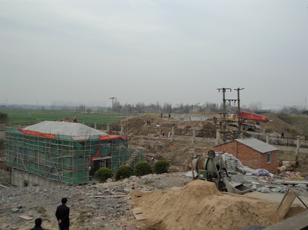 中派站工程是本次肥西縣濱湖泵站更新改造工程的第6標段,工程位于肥西縣上派鎮(zhèn)與嚴店鄉(xiāng)交界處,距合安高速公路約2km。為老站拆除新建項目,是以灌溉為主兼有排澇功能的泵站。為了保證灌區(qū)農(nóng)田春耕、春種用水需要,我公司自開工以來就加大投入、積極準備、合理安排。在所有6個標段中,第一個澆筑底板、第 一個實現(xiàn)結(jié)構封頂、第一個開始設備安裝。為工程按期完工打下了良好的基礎。
