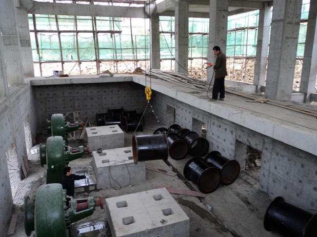 肥西縣濱湖泵站更新改造工程作為國家擴大內(nèi)需項目之一,由我公司施工的中派站工程自開工以來,我公司就組織精干力量投入現(xiàn)場,保質(zhì)量、搶進度。在經(jīng)過四個多月的緊張施工后,目前主體工程已經(jīng)封頂,設備安裝工作已經(jīng)開始。