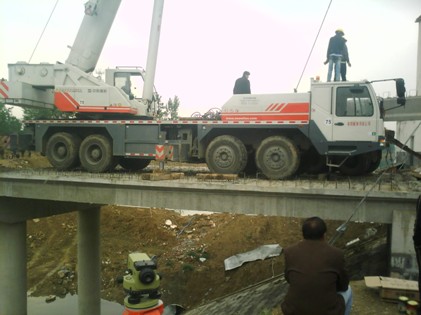 2011年5月22日下午6點30分,定廟橋的最后一片空心板梁順利吊裝到位,這標志著該橋的主體工程已基本完成。