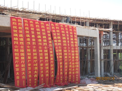 該工程造價(jià)約798萬(wàn)元,工程內(nèi)容包括高29.1米的紀(jì)念碑一座、建筑面積4053m2的展覽館一座及花崗巖廣場(chǎng)道路鋪裝15700m2。項(xiàng)目自開(kāi)工以來(lái),我單位通過(guò)精心策劃、統(tǒng)籌安排、科學(xué)管理,克服了項(xiàng)目實(shí)施過(guò)程中的環(huán)境、技術(shù)及協(xié)調(diào)等諸多難點(diǎn),本工程主體結(jié)構(gòu)于2013年7月13日順利封頂。