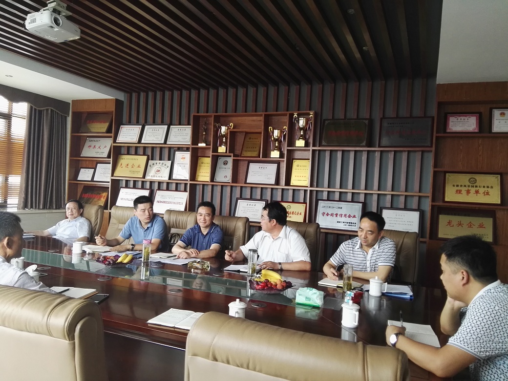 2018年6月8日合肥市工商局黨組成員、紀(jì)檢組長(zhǎng)徐瑜、企業(yè)注冊(cè)局局長(zhǎng)孫瑞國(guó)等一行在肥西市場(chǎng)監(jiān)管局局長(zhǎng)解賓啟等同志的陪同下來(lái)集團(tuán)考察調(diào)研,考察調(diào)研的主題是了解企業(yè)在生產(chǎn)經(jīng)營(yíng)過(guò)程中存在的困難和需要解決的問(wèn)題。