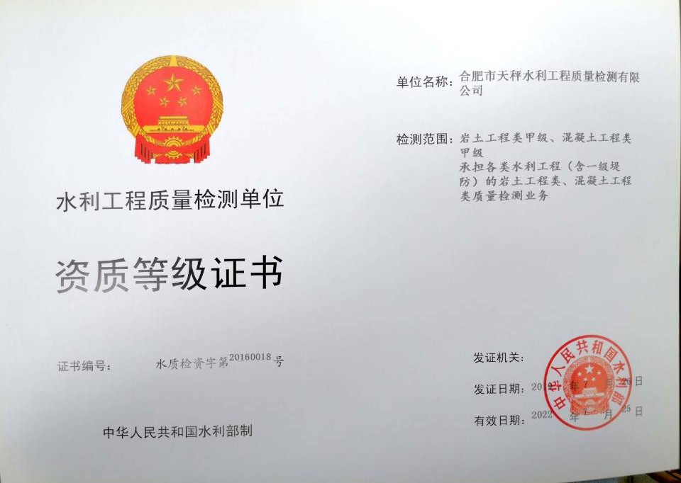 8月6日,水利部公告2019年度甲級水利工程質(zhì)量檢測單位資質(zhì)行政許可,天秤檢測公司申報(bào)的巖土類(新申請)、混凝土類(延續(xù)申請)均獲批準(zhǔn),偕同已獲的量測類甲級資質(zhì),“三甲”及第!