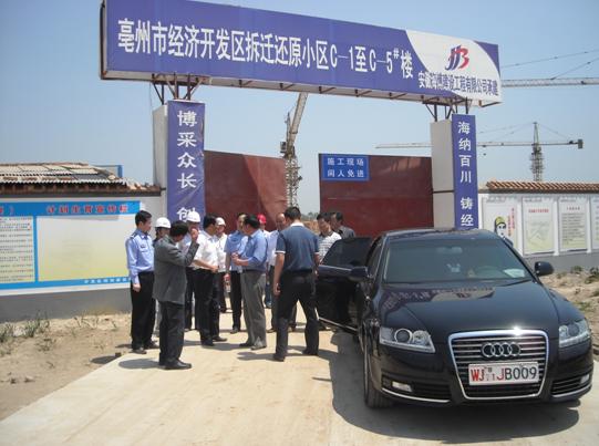 5月6日上午,亳州市副市長兼公安局長祁述志在市政府及經(jīng)開區(qū)相關(guān)人員的陪同下,視察了我公司承建的亳州市經(jīng)濟技術(shù)開發(fā)區(qū)拆遷還原安置小區(qū)C1~C5#樓工程。祁市長實地查看了施工現(xiàn)場情況,分別聽取了建設(shè)、監(jiān)理及施工單位對該項目的詳細介紹。祁市長對該工程的施工給予了充分肯定,并要求公司繼續(xù)加強施工力量,鼓足干勁,加快施工進度,爭取拆遷居民能早日搬進新家。