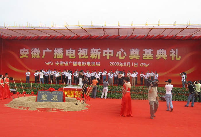 8月1日上午9:18分,合肥市政務文化新區(qū)美麗的天鵝湖畔,鑼鼓喧天,彩旗招展,我公司承建的安徽“861”行動計劃重大項目、省廣播電視新中心項目奠基開工儀式在此隆重舉行。